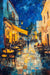 Premium Textil-Leinwand Caféterrasse am Abend KI