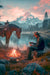 Premium Textil-Leinwand Pferd und Reiter am Lagerfeuer