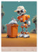 Oktober: ein niedlicher Roboter geht mit einem Truthan gassi
