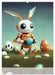 April: ein niedlicher Osterhasen-Roboter versteckt Ostereier