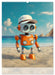 Juli: ein niedlicher Roboter macht Urlaub am Strand
