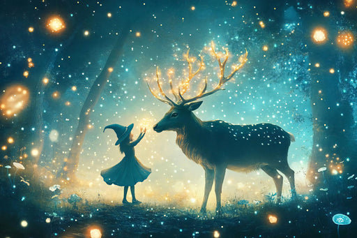 Auf einer verwunschenen Waldlichtung tanzt die fröhliche Hexe zusammen mit einem Hirsch mit leuchtendem Geweih. Die kleinen Mitternachtshexen nehm...