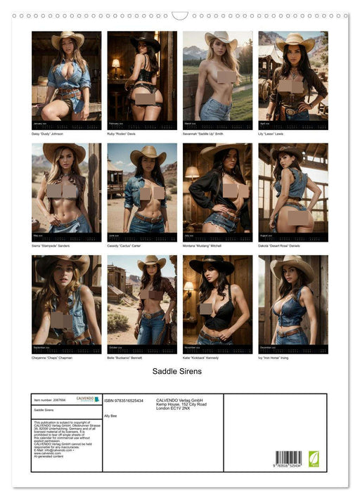 A Year of Cowgirl Seduction (Monthly calendar, 14 pages) Step into a world where the Wild West meets irresistible allure with our AI erotic cowgir...