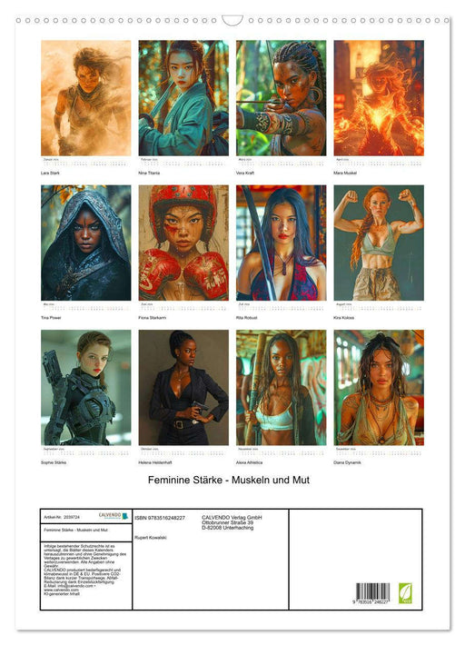 Eine Verehrung, welche die beeindruckende Kraft und den Mut starker Frauen in kraftvollen, muskulösen Posen darstellt. (Monatskalender, 14 Seiten)...