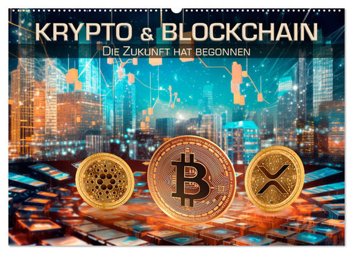 Die Zukunft hat begonnen (Monatskalender, 14 Seiten) Moderne abstrakte Collagen zur innovativen Blockchain-Technologie mit beliebten Kryptowährung...