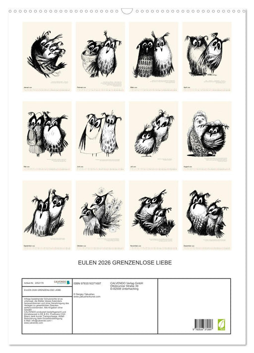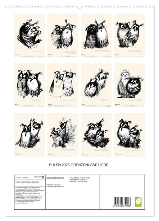 Vollständige Details anzeigenEULEN 2026 GRENZENLOSE LIEBE (CALVENDO Wandkalender 2026)