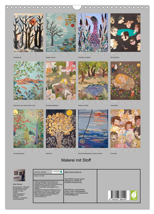 Textilbilder wie gemalt (Monatskalender, 14 Seiten) Die Bilder sind aus kleinen und kleinsten Stoffteilchen zunächst mit Stecknadeln ohne Vorlage,...