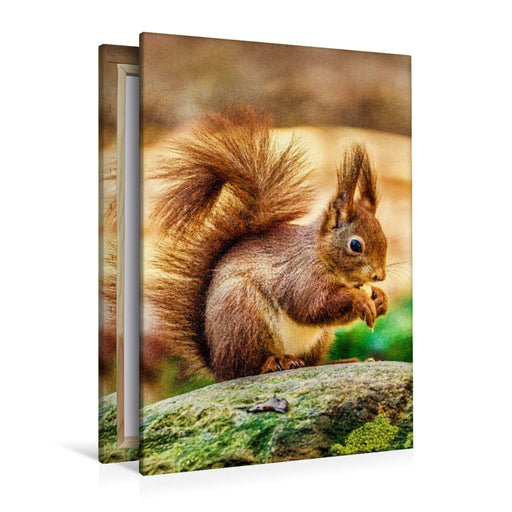 Vollständige Details anzeigenPremium Textil-Leinwand Die dunklen, glänzenden Augen des Eichhörnchens sind aufmerksam auf sein Futter gerichtet, während seine kleinen Ohren mit feinen Haarbüscheln spitz in die Luft ragen.