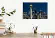 Premium Textil-Leinwand Atemberaubende Skyline von Seattle zur blauen Stunde