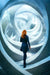 Premium Textil-Leinwand Blaues Labyrinth - Frau in Spiralen