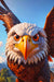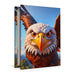 Ein niedlicher Comic-Weißkopfseeadler mit riesigen, glänzenden Kulleraugen schwebt majestätisch durch die Lüfte. Sein flauschiges weißes Kopfgefieder kontrastiert mit den weichen, ausgebreiteten braunen Flügeln. Mit einem verspielten Ausdruck und einem kleinen, fröhlichen Schnabelblick wirkt er mehr liebenswert als furchteinflößend.