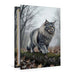 Premium Textil-Leinwand Die Maine Coon Katze schreitet durch den herbstlichen Wald und zeigt ihre kraftvolle Präsenz.