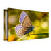 Premium Textil-Leinwand Ein Bläulingsfalter, genauer gesagt ein Blauhechel-Bläuling (Polyommatus icarus), der sanft auf einem Blatt ruht.