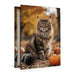 Premium Textil-Leinwand Eine Maine Coon Katze sitzt im Herbst zwischen Kürbissen und zeigt ihre elegante Ausstrahlung.