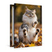 Premium Textil-Leinwand Eine Maine Coon Katze spielt im Herbstlaub und zeigt ihre verspielte Seite voller Lebensfreude