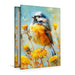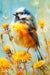 Diese kunstvolle Malerei zeigt eine Eurasische Blaumeise auf einem Zweig mit leuchtend gelben Löwenzahn-Blüten. Ihr blau-gelbes Federkleid macht sie zu einem der beliebtesten heimischen Singvögel. Das Motiv stammt aus dem Kalender "Heimische Vögel – Singvögel zwischen Blüten und Beeren" und bringt die Schönheit der Natur direkt ins Zuhause.
