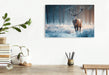 Premium Textil-Leinwand Hirsch im Winterwald - Rotwild im frostigen Morgenlicht