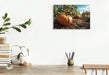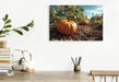 Premium Textil-Leinwand Kürbis im Gartenbeet bei Sonnenschein