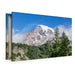 Der Mount Rainier Nationalpark liegt im US-Bundesstaat Washington. Mount Rainier ist ein 4392 m hoher Vulkan. Hier ist er an einem klaren Tag zu sehen, der strahlend blaue Himmel wird nur von ein paar sanften, weißen Wolken durchzogen. Der Gipfel des Berges ist teilweise von diesen Wolken umhüllt, sodass nur ein Teil des schneebedeckten Gipfels zu sehen ist, was ihn gleichzeitig geheimnisvoll und erhaben erscheinen lässt. Das satte Grün der umliegenden Natur, die hohen Tannen und dichten Wälder, rahmen die Szene harmonisch ein und verstärken die ruhige Atmosphäre.