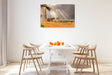 Premium Textil-Leinwand Pferde vor alter Windmühle in Gotland Schweden