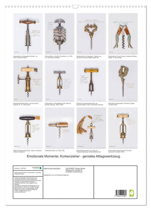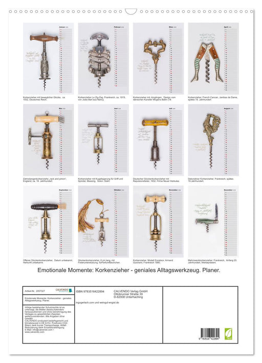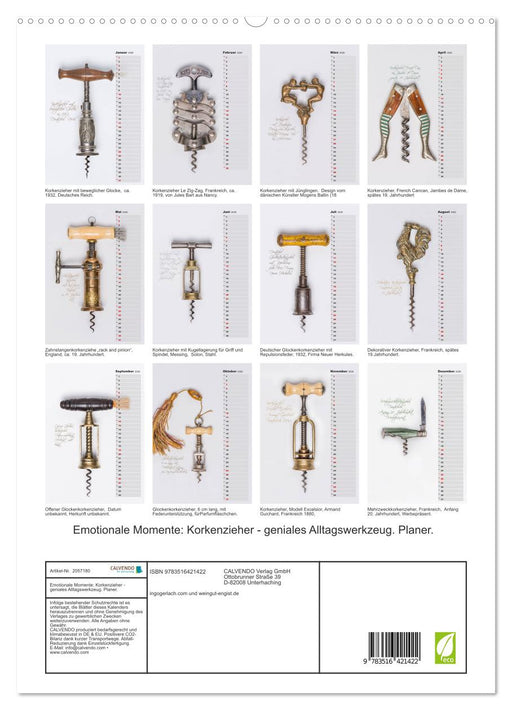 Dieser Kalender mit Korkenziehern aus mehreren Epoche und Regionen ist das dekorative Element für jeden Weinkenner und Weinliebhaber. (Monatskalen...