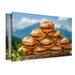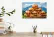 Premium Textil-Leinwand Bayerische Leberkässemmeln vor Alpenpanorama