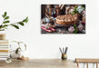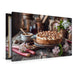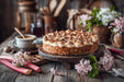 Premium Textil-Leinwand Rhabarberkuchen Bild mit Baiserhaube und Frühlingsblüten