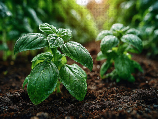 Vollständige Details anzeigenFrischer Basilikum wächst im Gartenbeet - CALVENDO Foto-Puzzle'