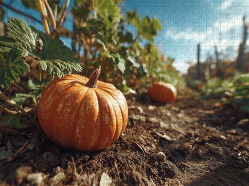 Vollständige Details anzeigenKürbis im Gartenbeet bei Sonnenschein - CALVENDO Foto-Puzzle'