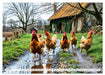 April: Hühner im Regen, Leben tropft vom alten Dach.