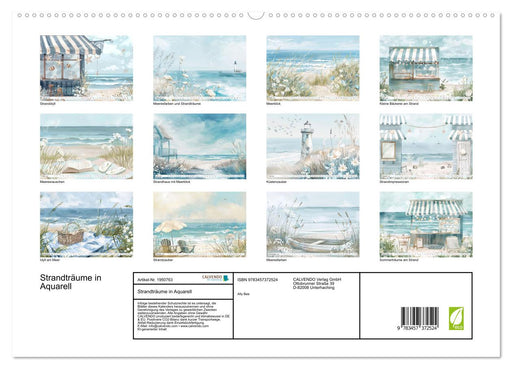 Strandträume in Aquarell (CALVENDO Premium Wandkalender 2026)