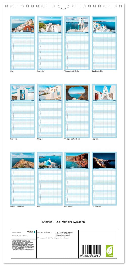 Vollständige Details anzeigenSantorini - Die Perle der Kykladen (CALVENDO Familienplaner 2026)