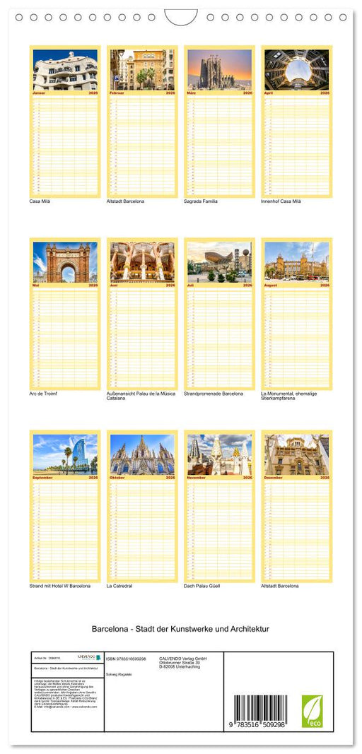 Vollständige Details anzeigenBarcelona - Stadt der Kunstwerke und Architektur (CALVENDO Familienplaner 2026)