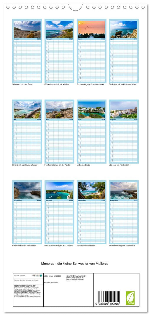 Vollständige Details anzeigenMenorca - die kleine Schwester von Mallorca (CALVENDO Familienplaner 2026)