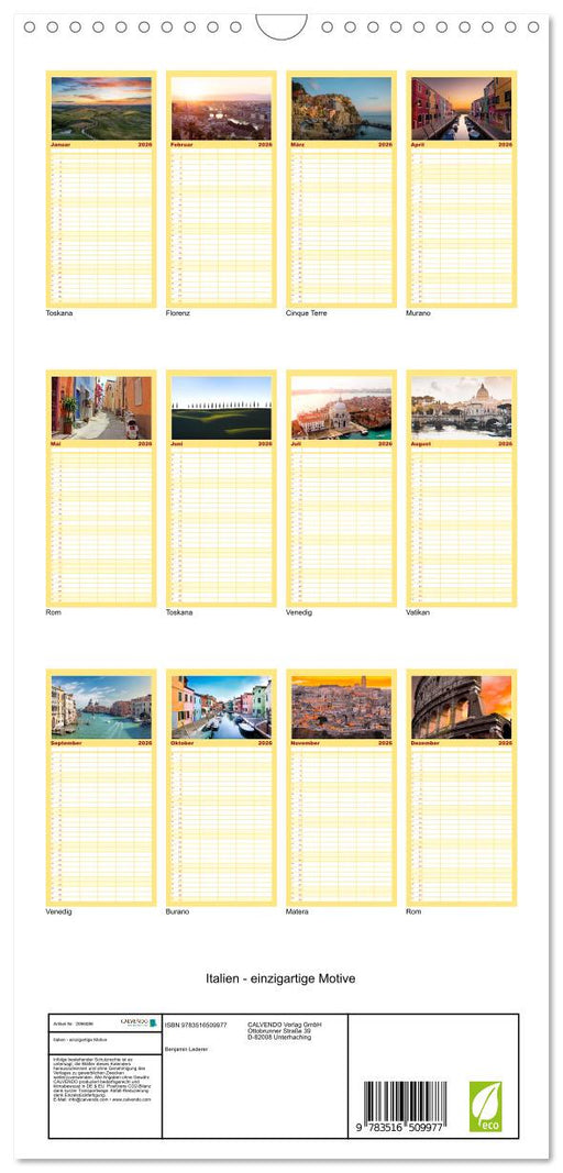 Vollständige Details anzeigenItalien - einzigartige Motive (CALVENDO Familienplaner 2026)