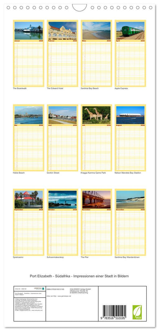 Vollständige Details anzeigenPort Elizabeth - Südafrika - Impressionen einer Stadt in Bildern (CALVENDO Familienplaner 2026)