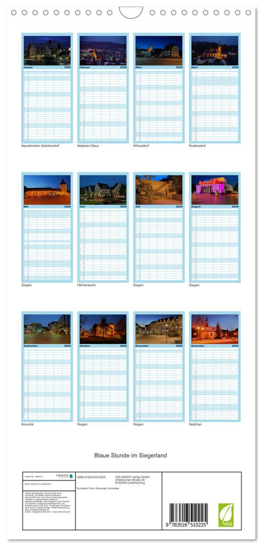 Vollständige Details anzeigenBlaue Stunde im Siegerland (CALVENDO Familienplaner 2026)