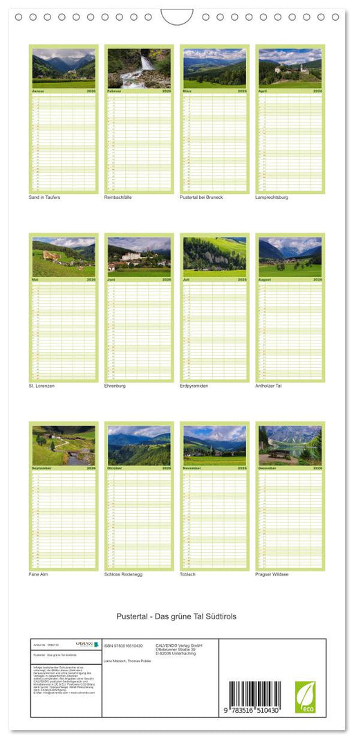 Vollständige Details anzeigenPustertal - Das grüne Tal Südtirols (CALVENDO Familienplaner 2026)