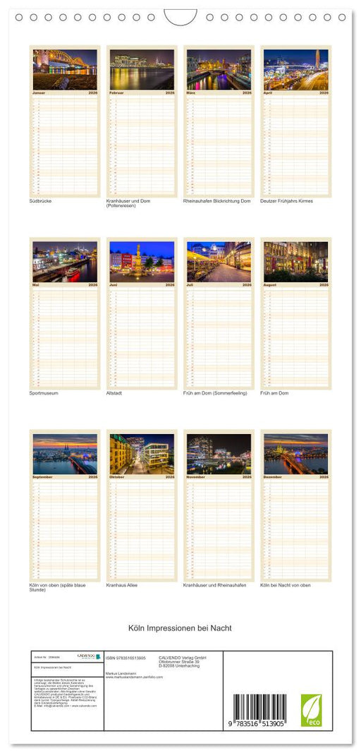 Vollständige Details anzeigenKöln Impressionen bei Nacht (CALVENDO Familienplaner 2026)