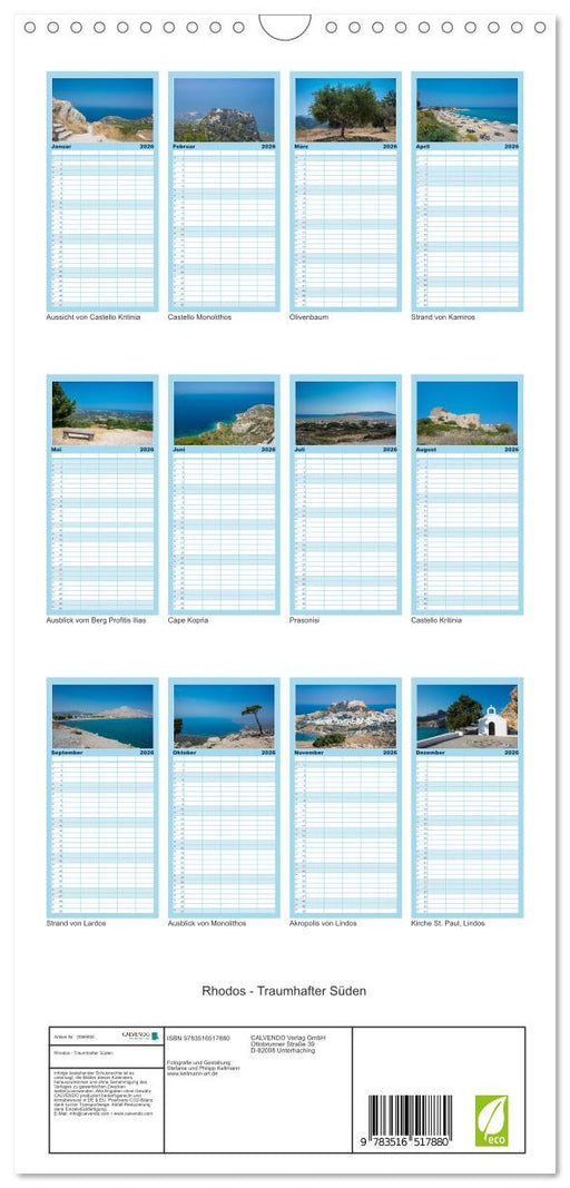 Vollständige Details anzeigenRhodos - Traumhafter Süden (CALVENDO Familienplaner 2026)