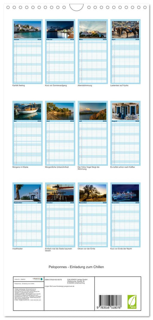 Vollständige Details anzeigenPeloponnes - Einladung zum Chillen (CALVENDO Familienplaner 2026)