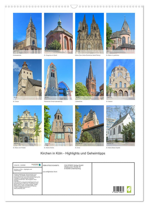 Vollständige Details anzeigenKirchen in Köln - Highlights und Geheimtipps (CALVENDO Wandkalender 2026)