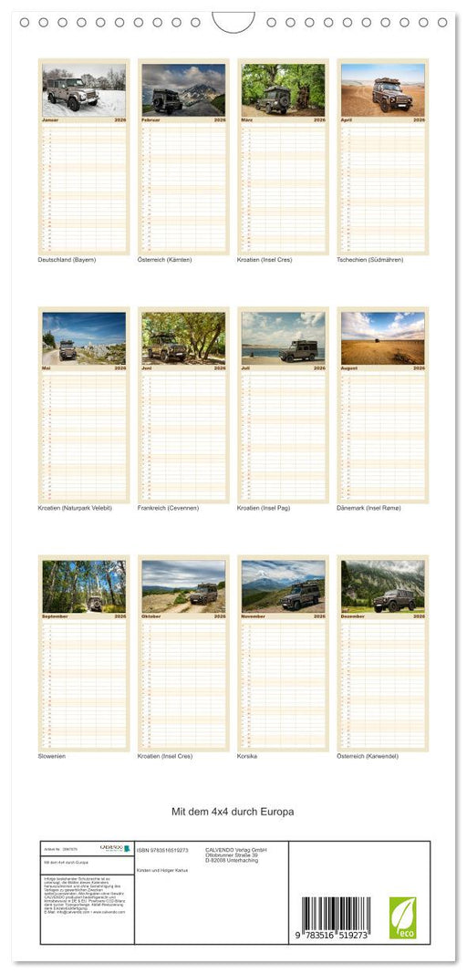 Vollständige Details anzeigenMit dem 4x4 durch Europa (CALVENDO Familienplaner 2026)