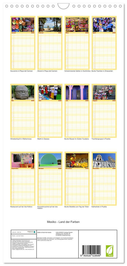 Vollständige Details anzeigenMexiko - Land der Farben (CALVENDO Familienplaner 2026)