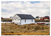 Oktober: Die beiden Holzbauten, der Turm und das Nebengebäude gehören zum alten und heutigen Friedhof von Røstlandet.