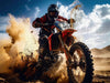 Dieses Bild fängt den Moment ein, in dem der Fahrer mit voller Kraft durch den Staub der Wüste rast. Der Blick ist fokussiert, die Anstrengung sichtbar – hier zählt nur eins: alles geben und den eigenen Grenzen immer wieder aufs Neue begegnen. Ein echtes Symbol für Mut, Leidenschaft und den sportlichen Ehrgeiz, der diese Wüstenabenteuer so einzigartig macht.