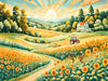 Erleben Sie die Schönheit des Landlebens mit diesem bezaubernden Motiv aus dem Kalender "Pfade zum Horizont - Pastellträume der Natur in allen Jahreszeiten". Das Bild im malerischen Pastellstil zeigt ein weitläufiges Sonnenblumenfeld, das von der Morgensonne in goldenes Licht getaucht wird. Ein Traktor fliegt über das Feld, während im Hintergrund ein malerisches Bauernhaus inmitten sanfter Hügel und grüner Wälder steht. Dieses Kunstwerk vereint die Ruhe der Natur mit der ländlichen Lebensart und ist perfekt für alle, die die Schönheit des Landlebens lieben.