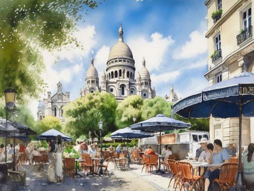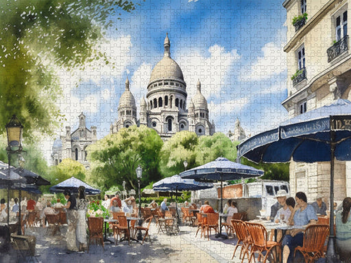 Vollständige Details anzeigenCafé auf dem Montmartre mit Basilika Sacré Coeur - CALVENDO Foto-Puzzle'