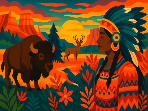 Wo Bisons, Adler und Menschen eins mit der Erde sind Leuchtende Farben, klare Formen und die Magie Amerikas: Dieses Motiv verbindet die stille Wür...