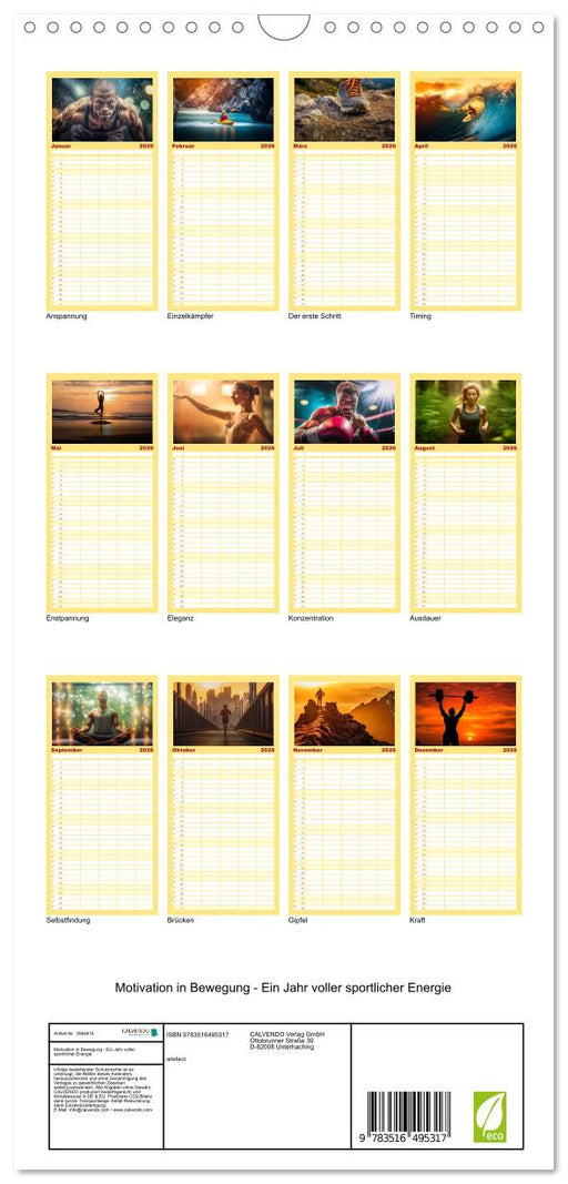 Vollständige Details anzeigenMotivation in Bewegung - Ein Jahr voller sportlicher Energie (CALVENDO Familienplaner 2026)